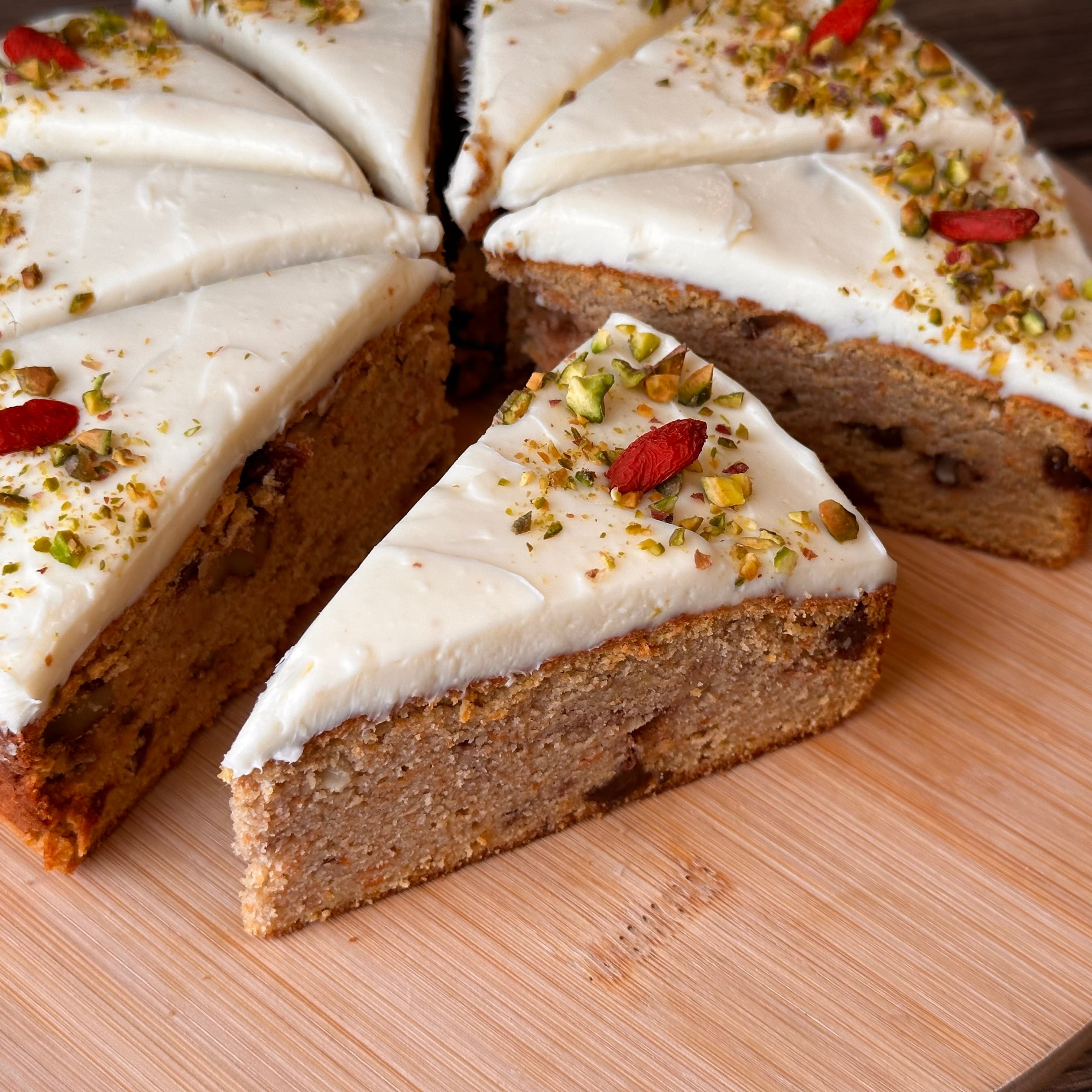 卵、豆乳、にんじん、きび砂糖、米油、おからパウダー、レーズン、胡桃、生姜、クリームチーズ、グラニュー糖、レモン果汁、ピスタチオ、クコの実/アルミフリーベーキングパウダー